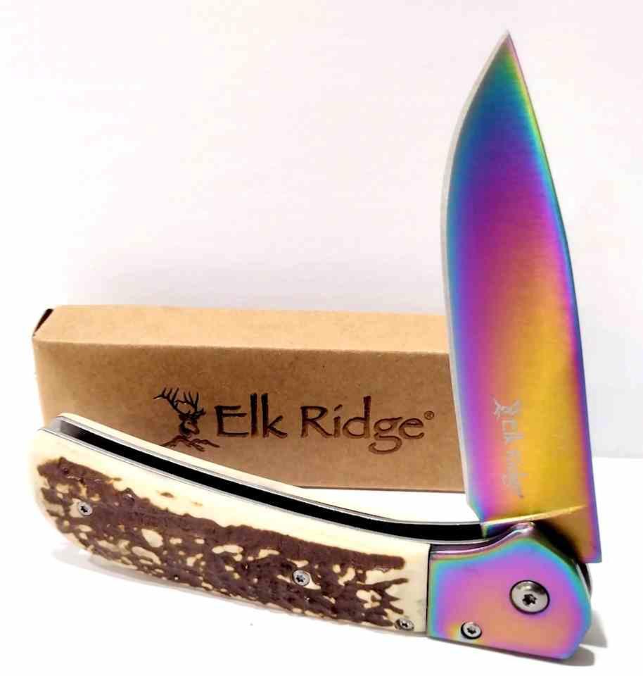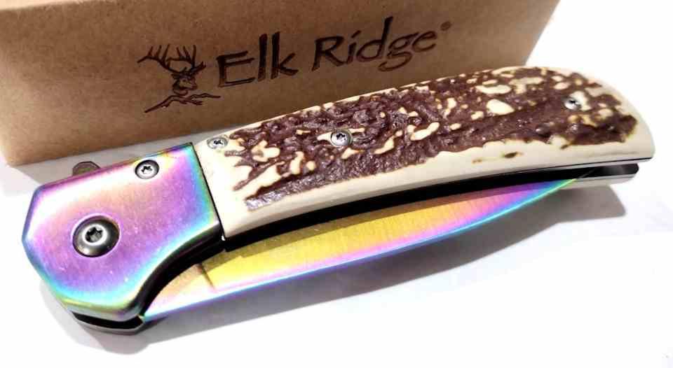 Le Elk Ridge ER-A2022RB combine fonctionnalité et esthétique rustique. Sa lame drop point en acier inox 3Cr13MoV est renforcée par un revêtement multicolore en nitrure de titane (TiN), offrant à la fois résistance à la corrosion et look distinctif. Le manche en imitation bois de cerf assure une prise en main confortable et un style traditionnel. L’ouverture assistée par flipper permet un déploiement rapide à une main, sécurisé par un verrouillage liner lock. Le clip de poche tip-up droitier garantit un port pratique.