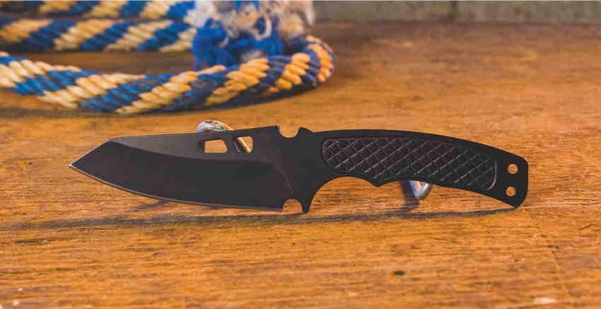 Descriptif : Le couteau de cou ABKT Tac Recon Ops est doté d'une lame tanto inversé en acier 8Cr13MoV 58-59HRC avec une finition noire. De conception plate semelle ce couteau possède des plaquettes de manche en fibre de nylon. L'étui GRN permet le port au cou