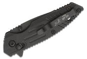 Descriptif : Le couteau Backup Bear OPS Mini Rancor IX est doté d'une lame drop point en acier D2 59-61HRC avec une finition noire. L'ouverture d'une main est possible avec le pouce. Le manche est en acier & Black Zytel avec un trou à l'extrémité pour le cordon de sécurité. En position ouverte la lame est bloquée par un système Slide Lock. Le clip de poche permet un transport discret dans la poche et dans le sac.