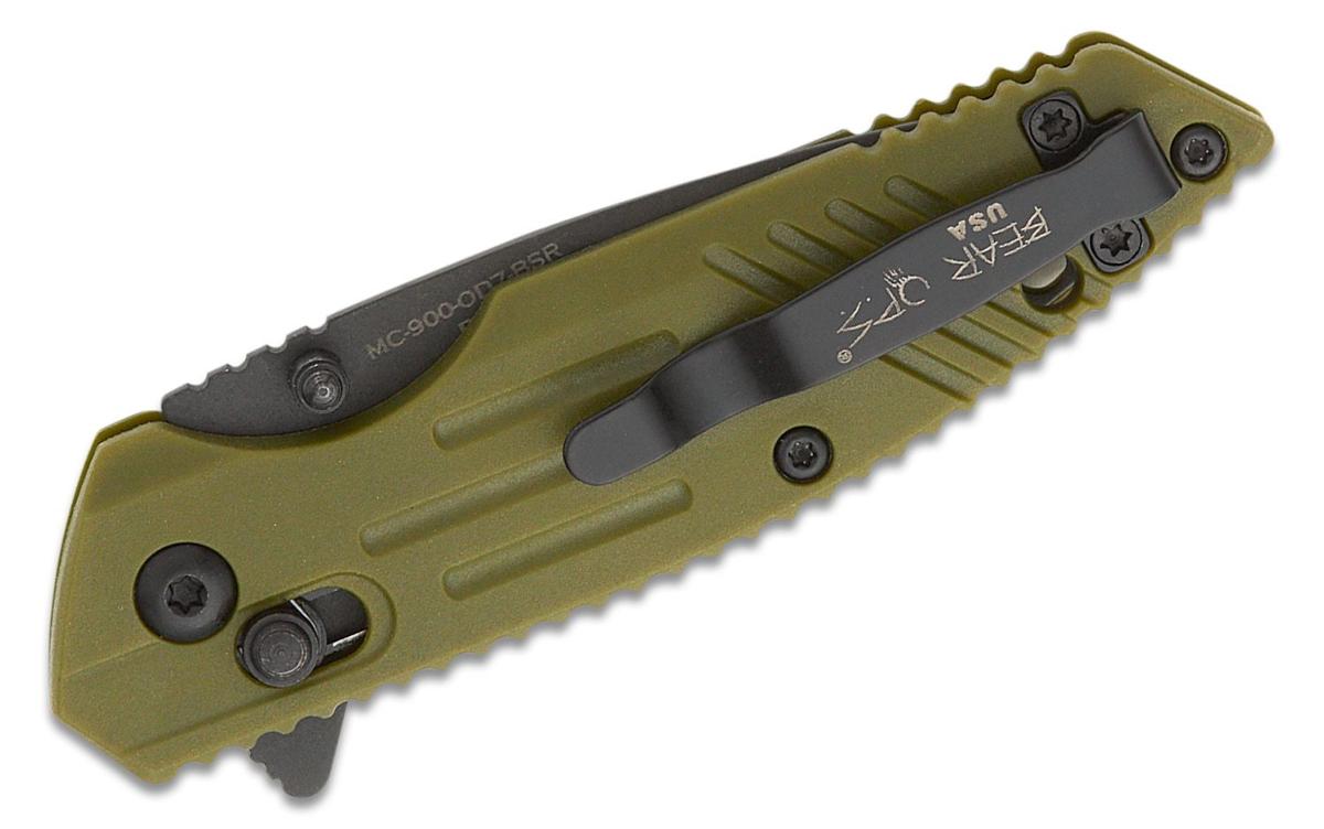 Descriptif : Le couteau Backup Bear OPS Mini Rancor IX est doté d'une lame drop point serrated en acier D2 59-61HRC avec une finition noire. L'ouverture d'une main est possible avec le pouce. Le manche est en acier & OD Green Zytel avec un trou à l'extrémité pour le cordon de sécurité. En position ouverte la lame est bloquée par un système Slide Lock. Le clip de poche permet un transport discret dans la poche et dans le sac.