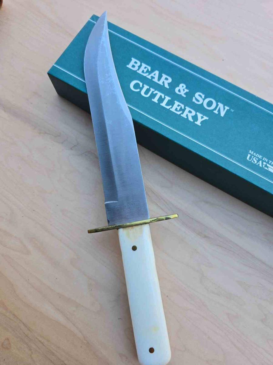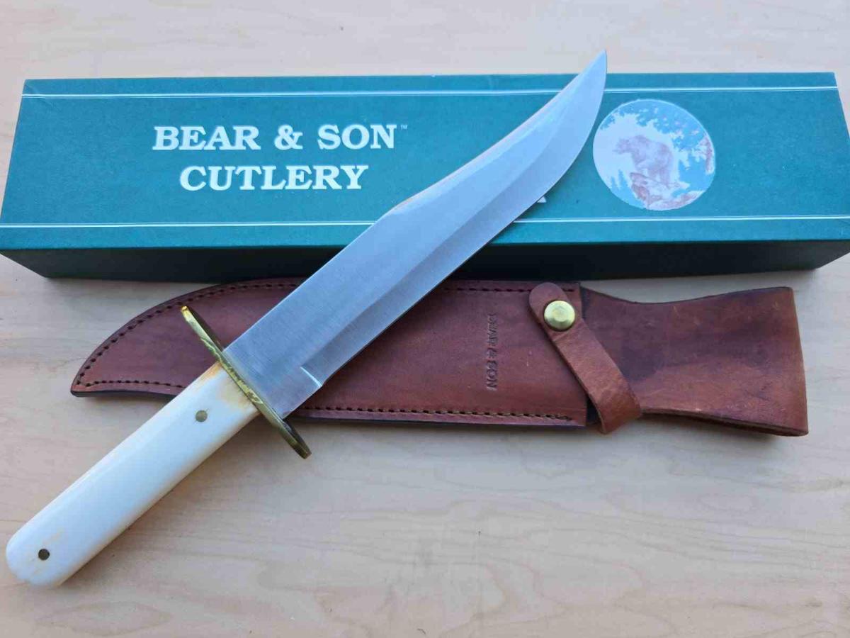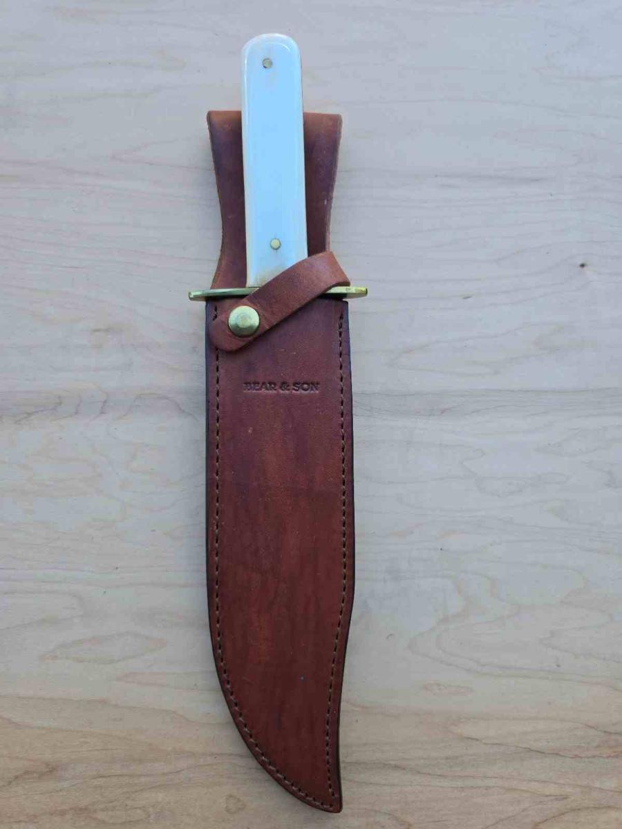 Meta Description : Découvrez le Bear & Son WSB02 American Bowie. Lame Acier Sandvik 12C27M (59 HRC) Satin, Manche White Smooth Bone. Fabriqué aux USA. Étui cuir inclus. Livraison Gratuite sur www.thebestknives.fr