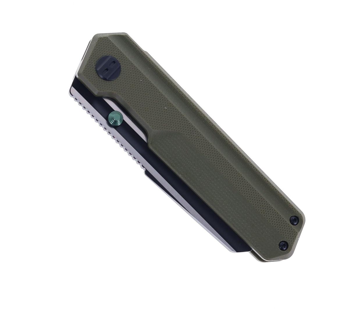 Descriptif : Le couteau Bestech Tardis est doté d'une lame razor en acier D2 58-60HRC avec une finition 2 tons. L'ouverture d'une main est très fluide grâce au pivot sur roulements à billes. Le manche est en acier & G10 Od Green. En position ouverte la lame est sécurisée par un linerlock. Le clip de poche permet un accès rapide au couteau.