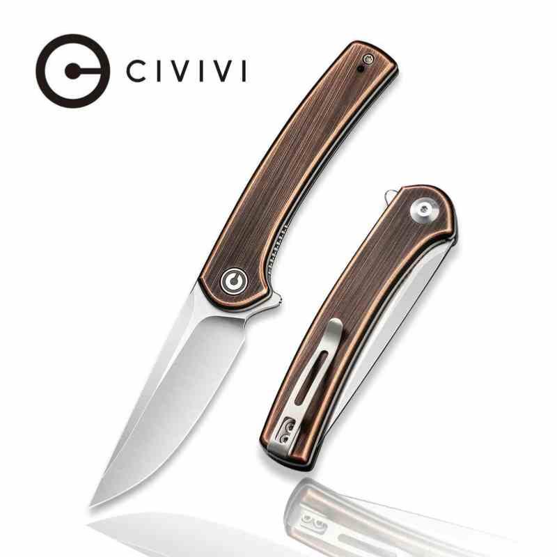 Le manche est en cuivre massif, offrant une prise en main confortable et une patine naturelle qui évolue avec le temps. Le système de verrouillage liner lock garantit une sécurité fiable, tandis que le flipper permet une ouverture rapide et intuitive. Le pivot à roulement à billes assure une action fluide et réactive.