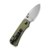 Descriptif : Le couteau CIVIVI Baby Banter Green est doté d'une lame spear point en acier Nitro-V 58-60HRC avec une finition délavée grise. L'ouverture d'une main est très fluide grâce au pivot sur roulement à billes. Le thumb stud est en titane. Le manche est en G10 vert avec un liner en acier. La sécurité linerlock assure un blocage parfait de la lame et le clip un transport discret dans la poche et dans le sac.