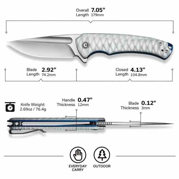 Le CIVIVI Voidflare (référence C24040-2) est un couteau pliant élégant qui se distingue par son esthétique futuriste et son ergonomie travaillée. Conçu pour l'efficacité, ce modèle est un excellent choix pour le budcraft, la survie urbaine ou comme outil EDC quotidien. Ses lignes dynamiques et son motif texturé en font une pièce aussi agréable à utiliser qu'à regarder.