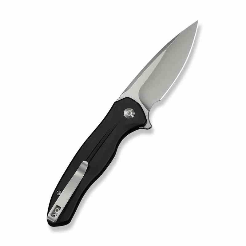 Le Manche devant la matière Black Aluminum (Aluminium Anodisé Noir) offre une légèreté incroyable tout en garantissant une robustesse structurelle parfaite. Son design ergonomique avec une rainure pour l'index assure une prise en main naturelle et sécurisante. Le mécanisme Button Lock permet de déverrouiller la lame d'une simple pression, gardant vos doigts hors de la trajectoire du tranchant. Pour un port quotidien pratique, il est équipé d'un clip de poche réversible en acier inoxydable.