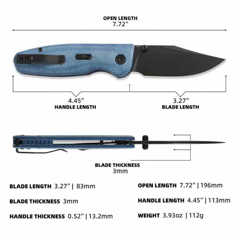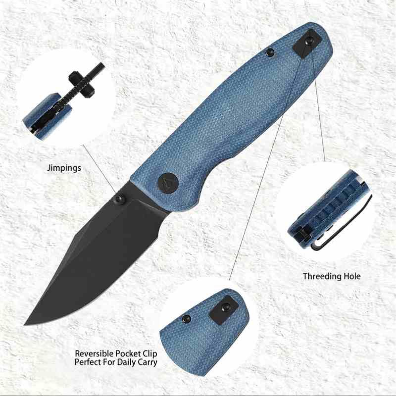 Manche en Blue Micarta pour une durabilité et un grip d'exception.