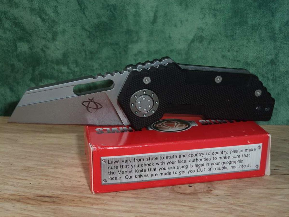 Couteau Mantis Pit Boss pliant - Longueur fermé 8.89cm - Longueur de lame 6.03cm - Lame en acier CPM-440V - Lame type Sheepsfoot blade - Epaisseur de lame 5mm - Platines du manche en acier - Plaquettes en G-10 - Ouverture d'une main - Système de sécurité - Clip