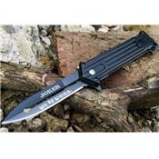Couteau USMC Marine Reaper Ouverture Assistée pliant - Couteau en vente dans les foyers des Marines - Longueur fermé 12.06cm - Longueur de lame 9.20cm - Lame en acier 440C - Lame partiellement serrated - Lame teinte anti reflet avec logo des Marines sur la lame - Platines du manche en acier - Grosse vis de serrage de la lame - Plaquettes en abs - Dragonne avec tête de mort pour une extraction rapide de la poche - Ouverture d'une main - Système de sécurité - Clip - Entièrement démontable - Idéal pour le terrain, il n'a pas sa place dans une vitrine |