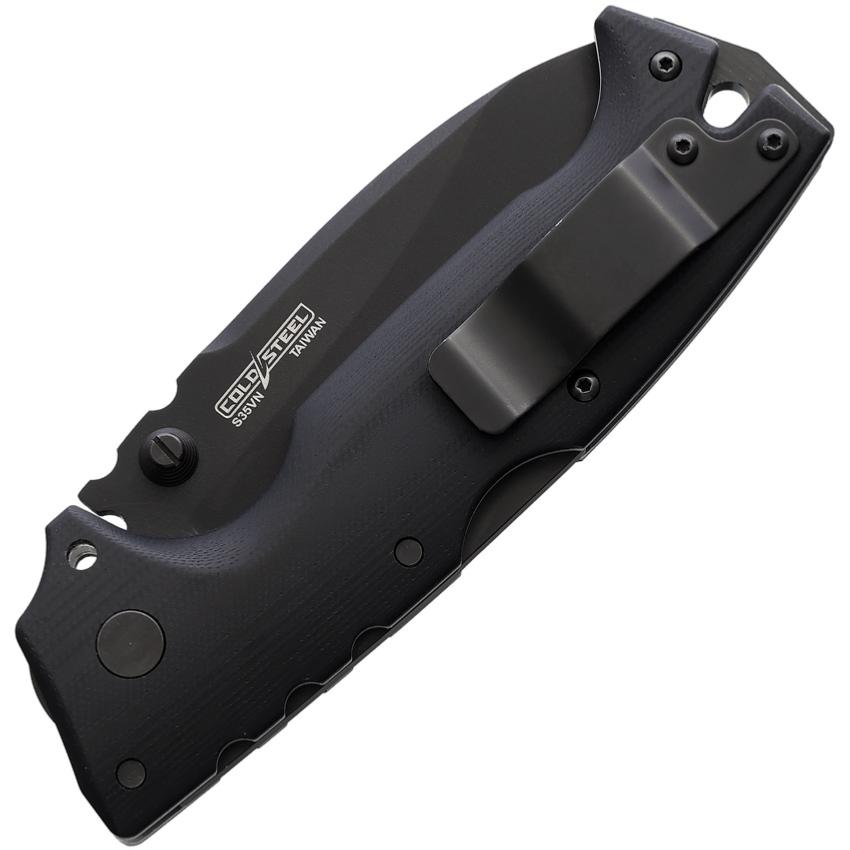 Descriptif : Le couteau Cold Steel AD-10 est doté d'une lame drop point en acir S35VN 59-61HRC avec une finition noire. L'ouverture d'une main est possible avec le pouce. Le manche est en acier & en G10 avec un trou en bout de manche pour le cordon de sécurité. La sécurité Tri-Ad Lock assure un blocage parfait de la lame & le clip un accès rapide au couteau.