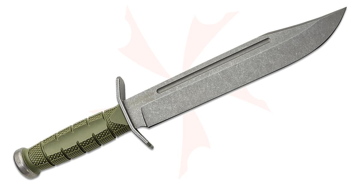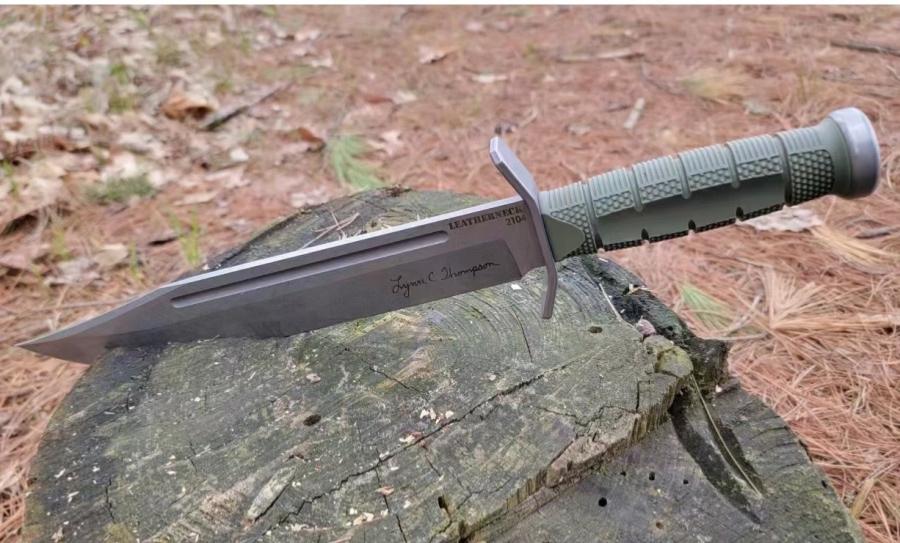 Version exclusive du célèbre Leatherneck Bowie, cette édition signée Lynn C. Thompson se distingue par sa lame large en acier D2 allemand, son fuller intégral (blood groove) et sa finition stonewash. Le manche Griv-Ex vert OD reprend le design classique avec une garde allongée et des quillons courbés vers l’avant pour une prise en main renforcée. Chaque exemplaire est individuellement numéroté, livré dans une boîte collector signée.
