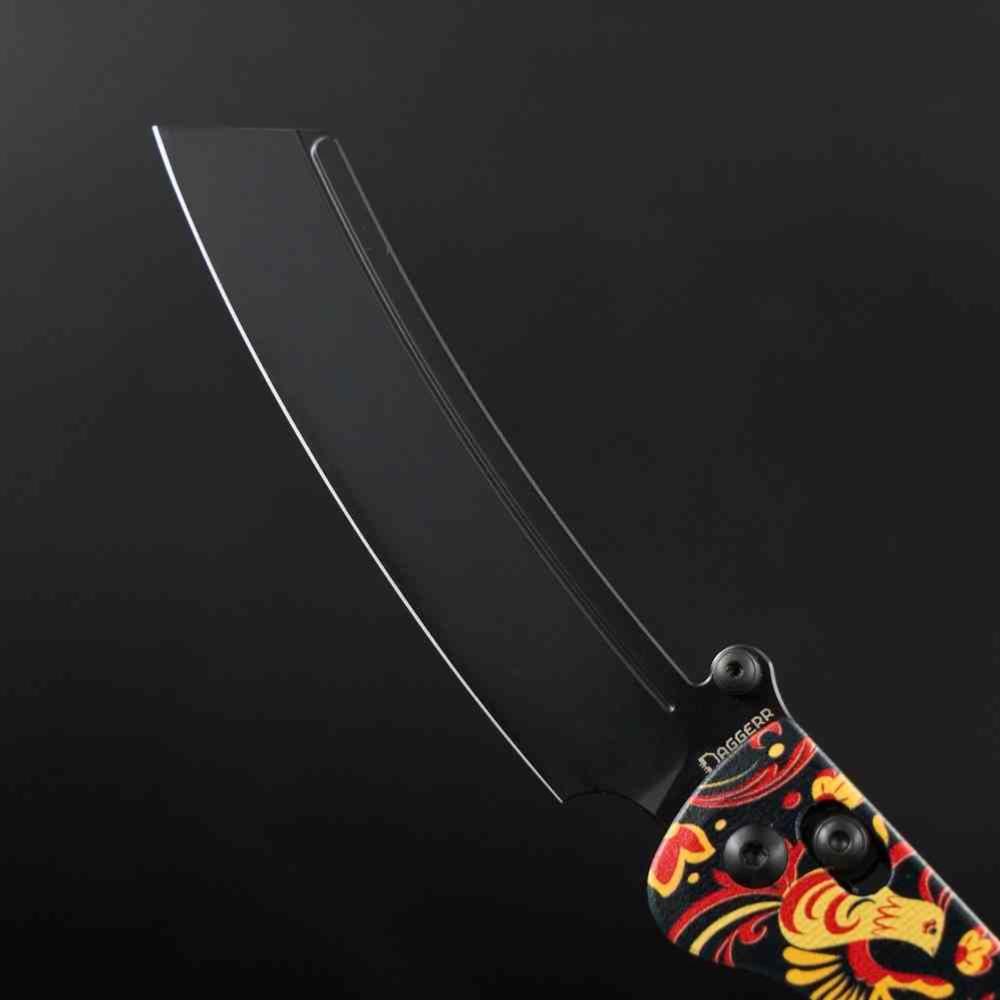 Le Daggerr Behemoth Slim est la version optimisée et affinée du célèbre géant de la marque. Cette édition spéciale Khokhloma marie l'agressivité du design russe à un art traditionnel aux motifs floraux gravés sur la lame. Conçu pour offrir un équilibre parfait entre un couteau de poche imposant et un outil EDC (Everyday Carry) transportable, il conserve tout le caractère tactique propre à Daggerr.
