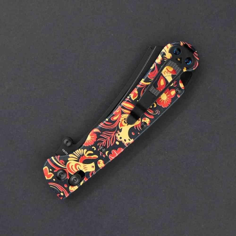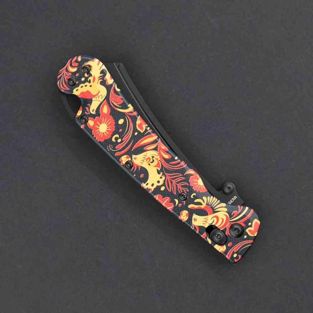 Style Unique Khokhloma : Un contraste saisissant entre l'art traditionnel slave et un couteau tactique moderne.