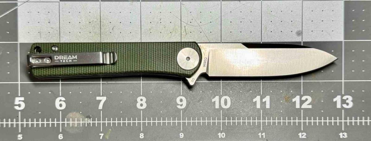 Le Dreamtech D3896MG se distingue par sa légèreté remarquable de seulement 80 g, ce qui le rend quasiment imperceptible dans la poche. La Lame Acier D2 est un standard de durabilité, offrant un excellent compromis entre dureté et résistance à l'usure. Son profil Drop Point est idéalement polyvalent pour tous types de coupes. Le Manche Micarta vert apporte non seulement une touche esthétique organique, mais surtout une ergonomie supérieure avec une texture antidérapante naturelle.