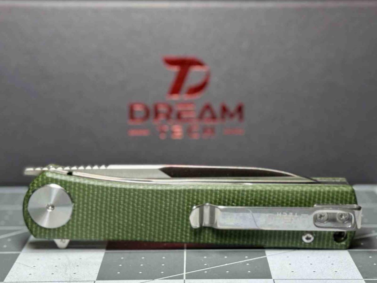 Le Dreamtech D3896MG est un couteau pliant de type EDC (Everyday Carry) qui allie parfaitement sobriété et efficacité. Conçu pour les amateurs de mécanique fluide et de matériaux robustes, il arbore un manche en Micarta vert offrant une adhérence exceptionnelle, même en conditions humides. Sa lame en acier D2, reconnue pour sa capacité de coupe prolongée, en fait un partenaire fiable pour le budcraft, la survie ou les tâches quotidiennes. Son ouverture par Flipper assure un déploiement instantané d'une seule main.