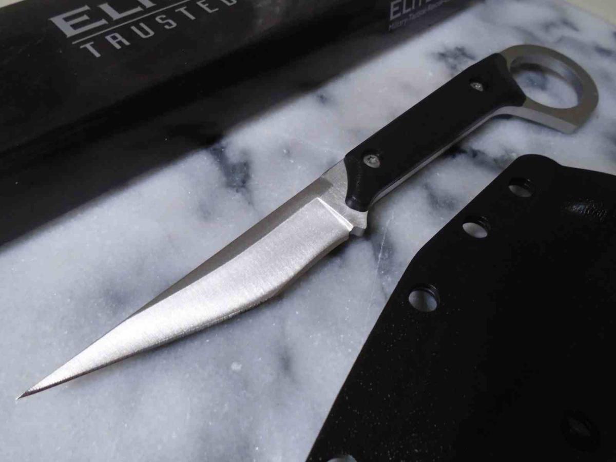 ElitEdge EE20691SL – couteau Kiridashi fixe avec lame 440 satin finish et manche synthétique noir. Full tang, finger ring et étui ceinture plastique noir. Livraison Gratuite sur www.Thebestknives.fr..