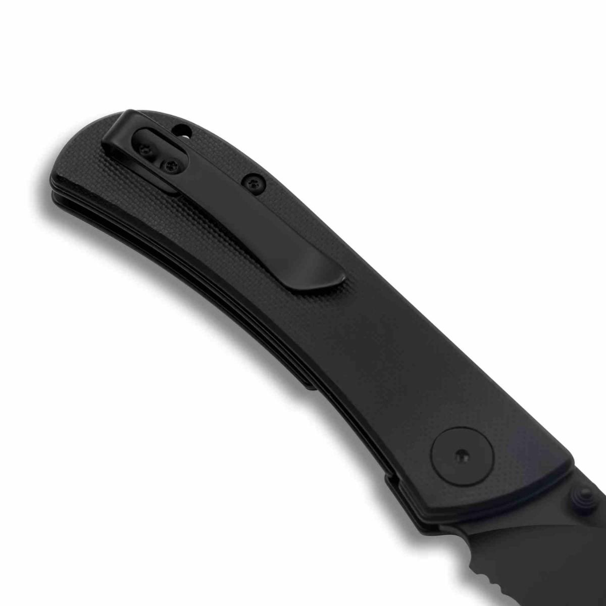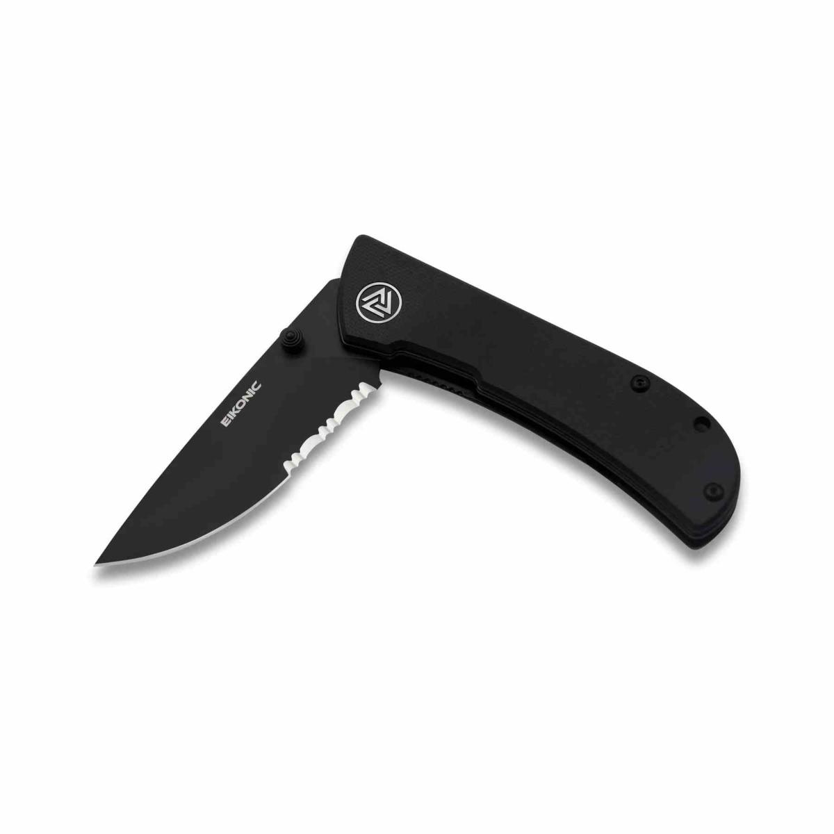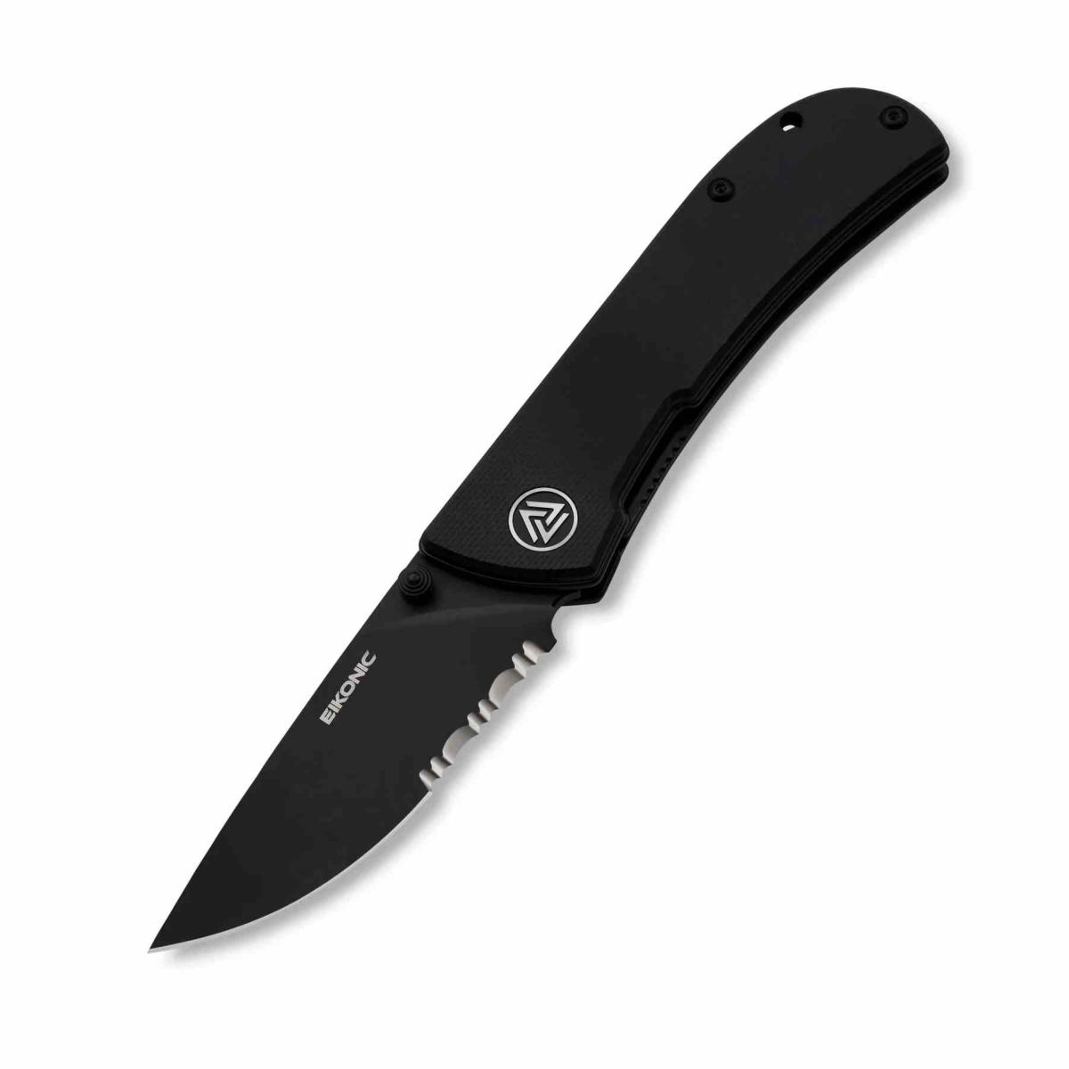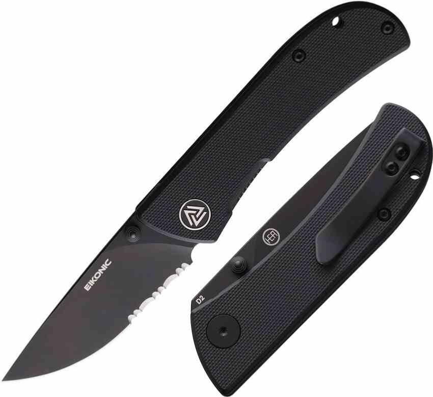 Le Fairwind, design HEAdesigns pour Eikonic Knives, est un pliant compact pensé pour l’EDC. Sa lame drop point en acier D2 black stonewashed combo edge (59‑60 HRC) combine tranchant lisse et dentelé pour une polyvalence accrue. Le manche en G10 noir texturé assure robustesse et grip. Le linerlock sécurise la fermeture, l’ouverture se fait par thumb stud, et le clip deep carry discret permet un port quotidien confortable.