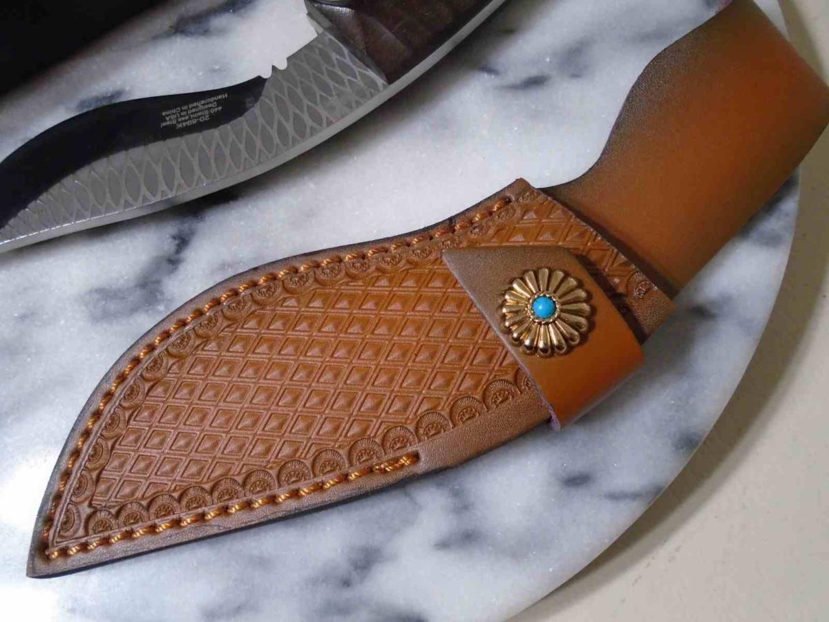 Matériaux Authentiques : L'alliance d'un manche en bois véritable et d'un étui en cuir offre un style traditionnel et une excellente durabilité.