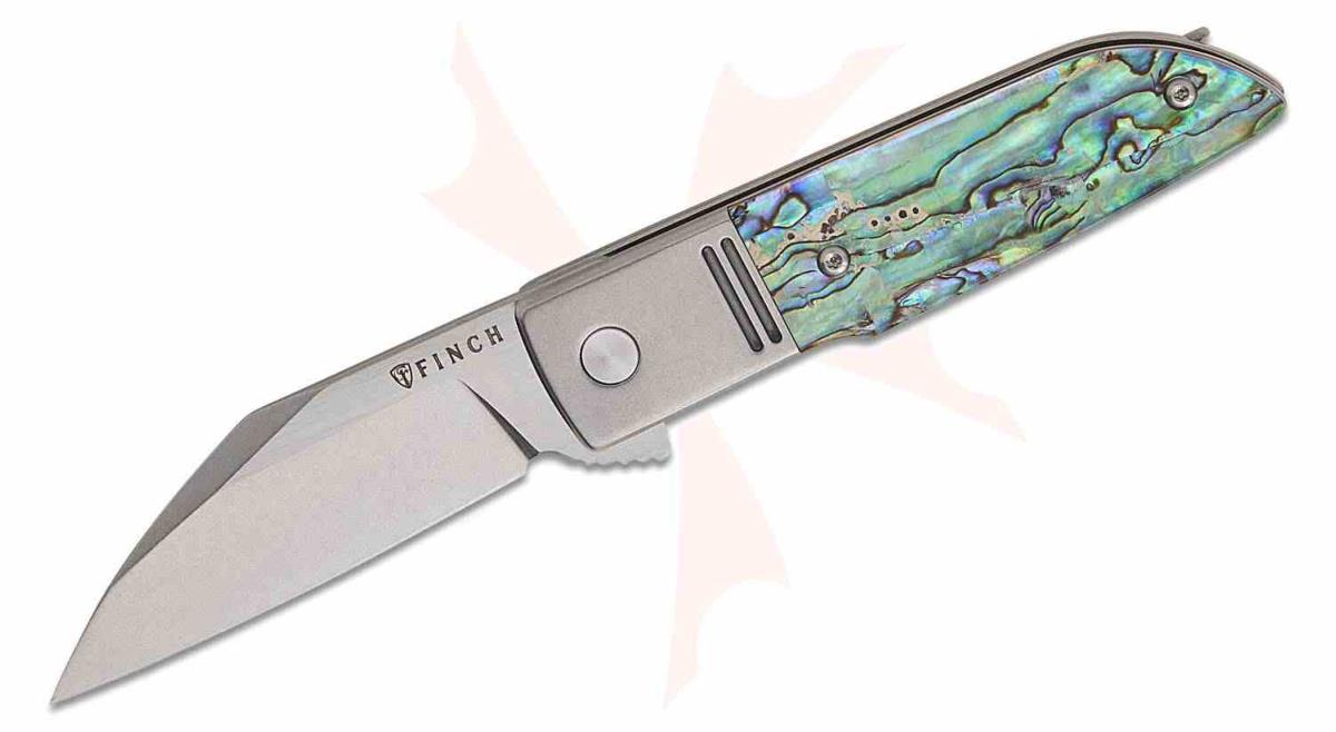 Le Finch Geneva Spur Abalone est la version la plus élégante de la gamme, combinant performance et raffinement. Sa lame Wharncliffe en acier 154CM de 6,3 cm reçoit une finition two‑tone stonewashed / brushed, offrant un excellent équilibre entre tranchant, résistance à l’usure et esthétique. L’acier 154CM affiche une dureté d’environ HRC 59‑61, idéale pour un EDC fiable et durable.