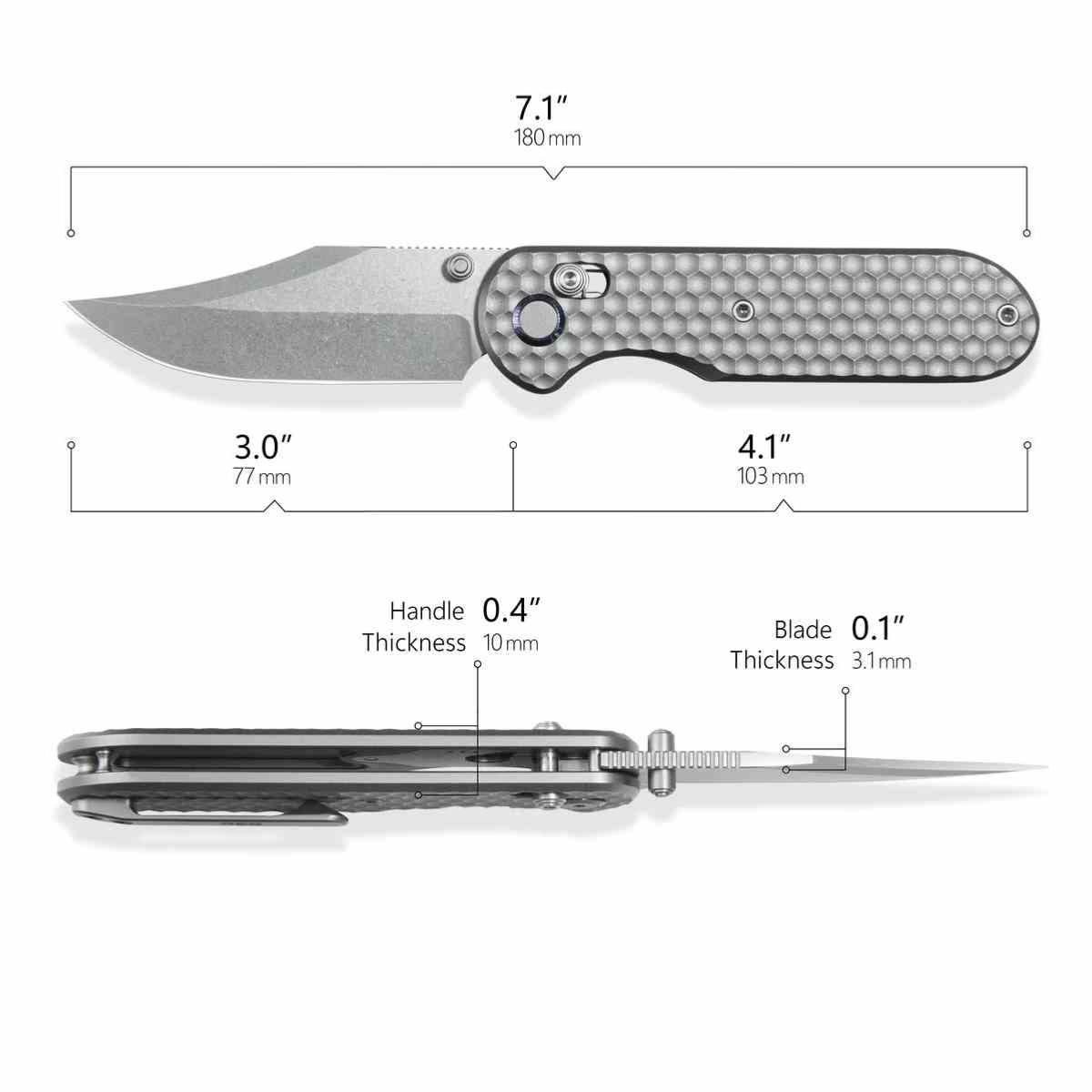 L'Ethereal Cutter est un chef-d'œuvre de compacité. Sa lame en Acier M390 offre une rétention de tranchant inégalée et une résistance extrême à la corrosion. Le profil Clip Point permet une grande précision pour les travaux de détail tout en restant robuste pour les tâches plus lourdes. Le Manche Titane 6AL4V est non seulement ultra-résistant mais apporte également une légèreté incroyable (seulement 92 g), rendant ce couteau presque imperceptible en poche.
