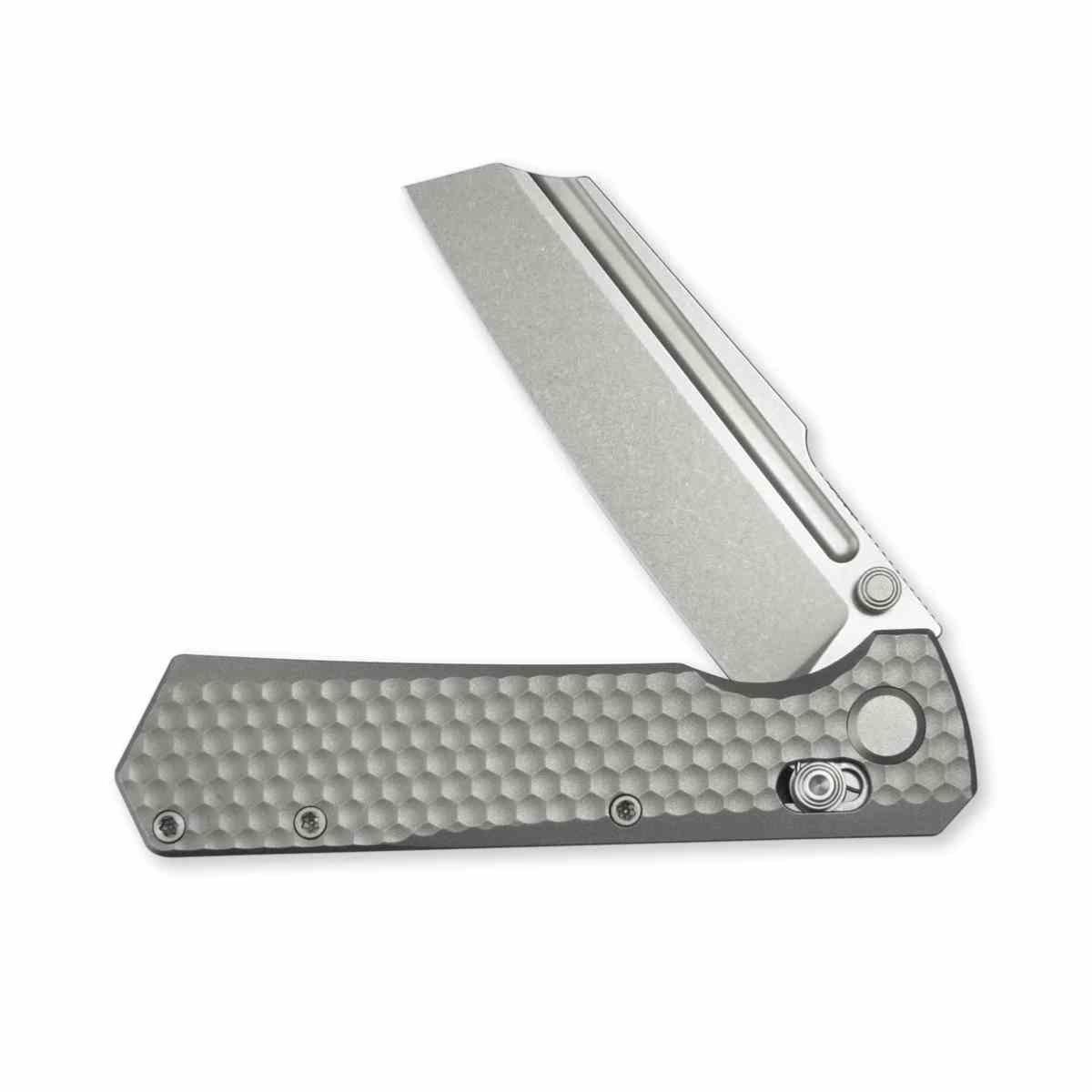 Le Noxiz est équipé d'une lame en Acier Bohler M390 qui garantit une tenue du tranchant exceptionnelle. Son profil Sheepsfoot offre une pointe robuste et une grande surface de coupe, minimisant les risques de perçage accidentel tout en maximisant l'efficacité. Le manche en titane 6AL4V est sculpté pour offrir une ergonomie remarquable, assurant une prise en main intuitive et sécurisée, quelle que soit la position. Le système Axis Lock, couplé aux rondelles en bronze, permet une ouverture et une fermeture d'une fluidité exemplaire.