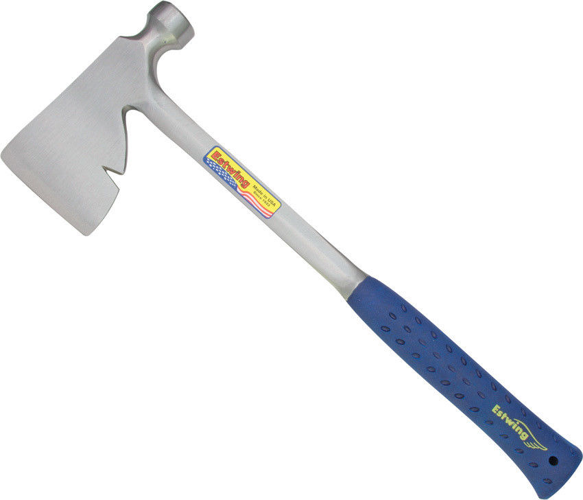 Hache Tomahawk Estwing Campers Axe à lame fixe - Conçu pour la chasse la pêche et le camp - Longueur totale 43.18cm - Longueur de la lame 8.57cm - Lame en acier carbone forgé - Fonction marteau à l'extrémité & arrache clous - Manche en FRN - Made In USA