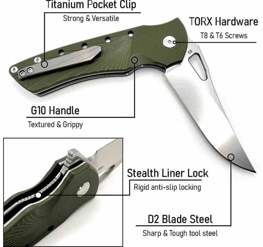 Tranchant Durable : L'acier D2 assure une excellente rétention du fil, indispensable pour les travaux de coupe exigeants en extérieur.