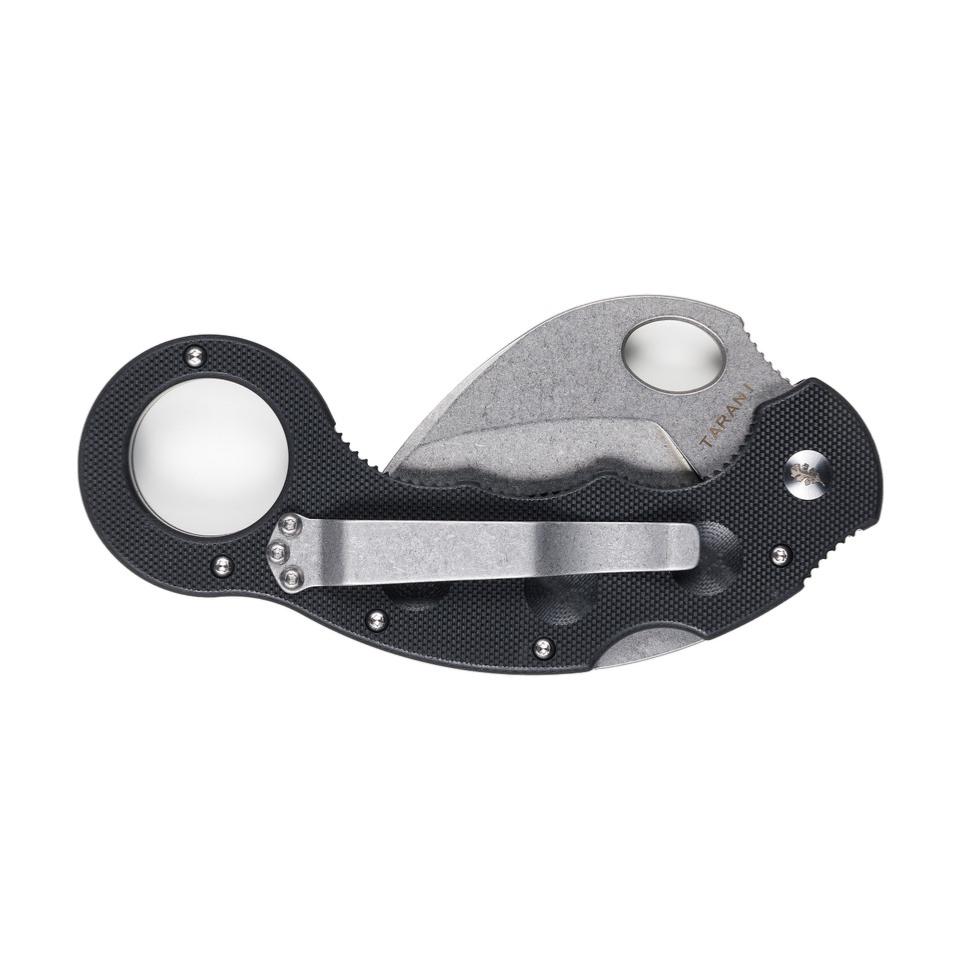 Le couteau TARANI Journeyman de High Desert Blade Works allie performance et praticité avec sa lame karambit en acier D2 finition stonewash et son manche en G10 noir. Son design ergonomique et son système de sécurité lockback en font un outil fiable pour toutes vos tâches quotidiennes.