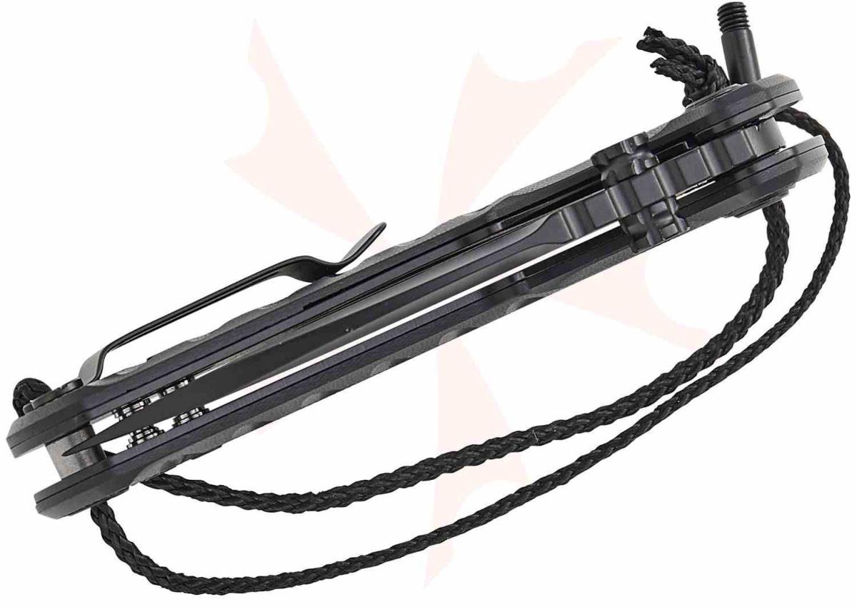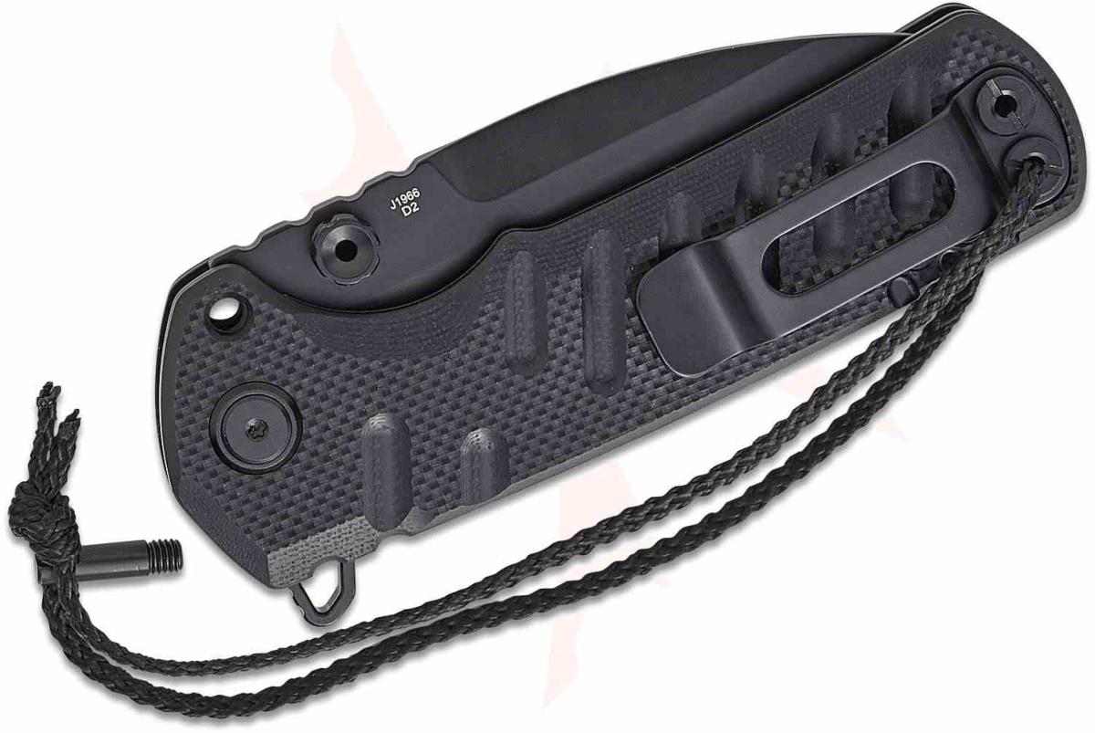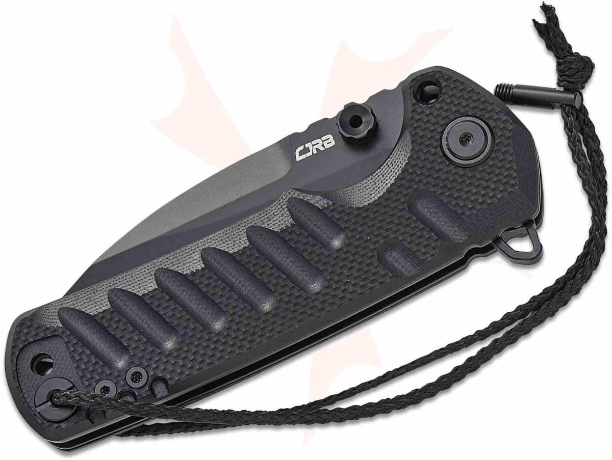 Le CJRB Tundra J1966BBK est un couteau pliant conçu pour les environnements tactiques et les usages intensifs. Il est équipé d’une lame drop point en acier D2, réputé pour sa dureté et sa tenue de coupe. La finition Black PVD offre une protection renforcée contre l’usure et un look furtif. Le manche en G10 noir texturé avec liners noirs assure une prise en main solide et une esthétique sobre. L’ouverture se fait via un flipper fluide monté sur roulements céramique, et le verrouillage est assuré par un liner lock renforcé par un pin de sécurité secondaire.