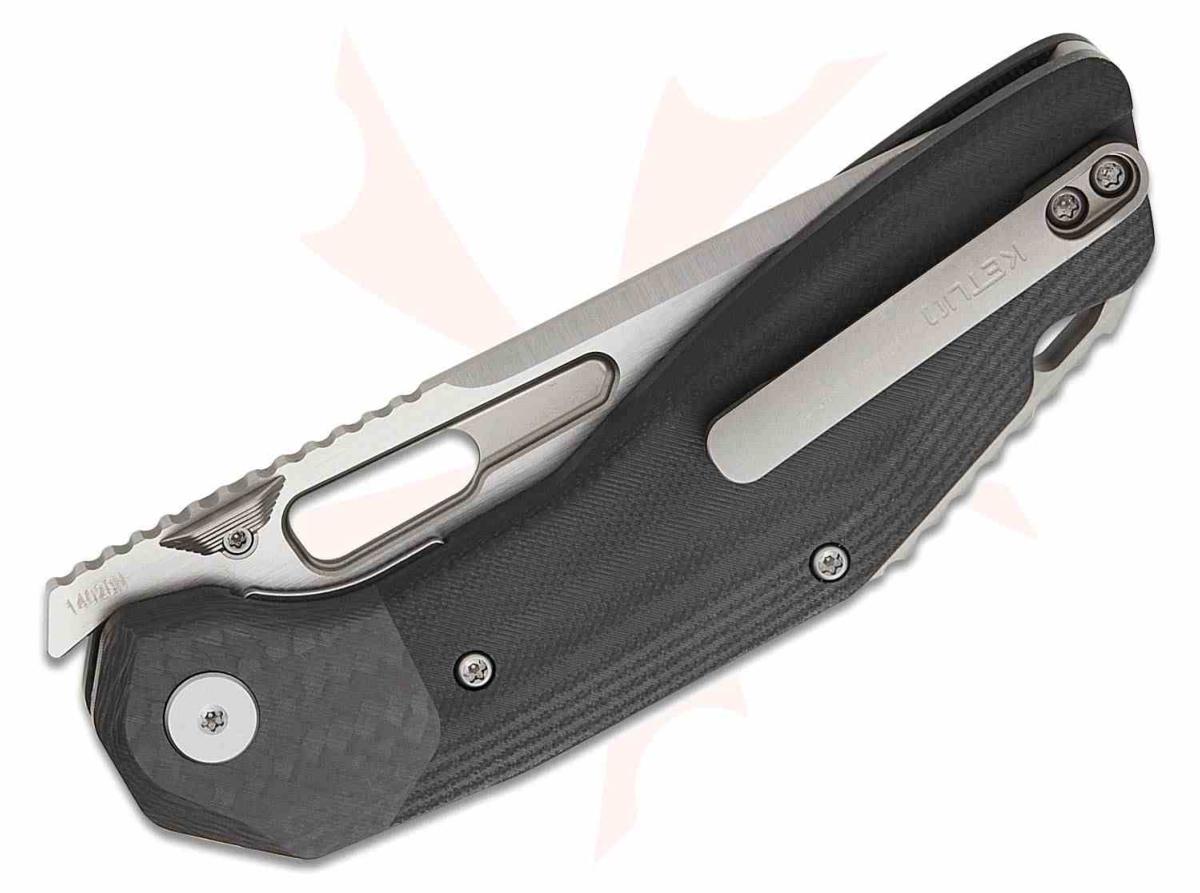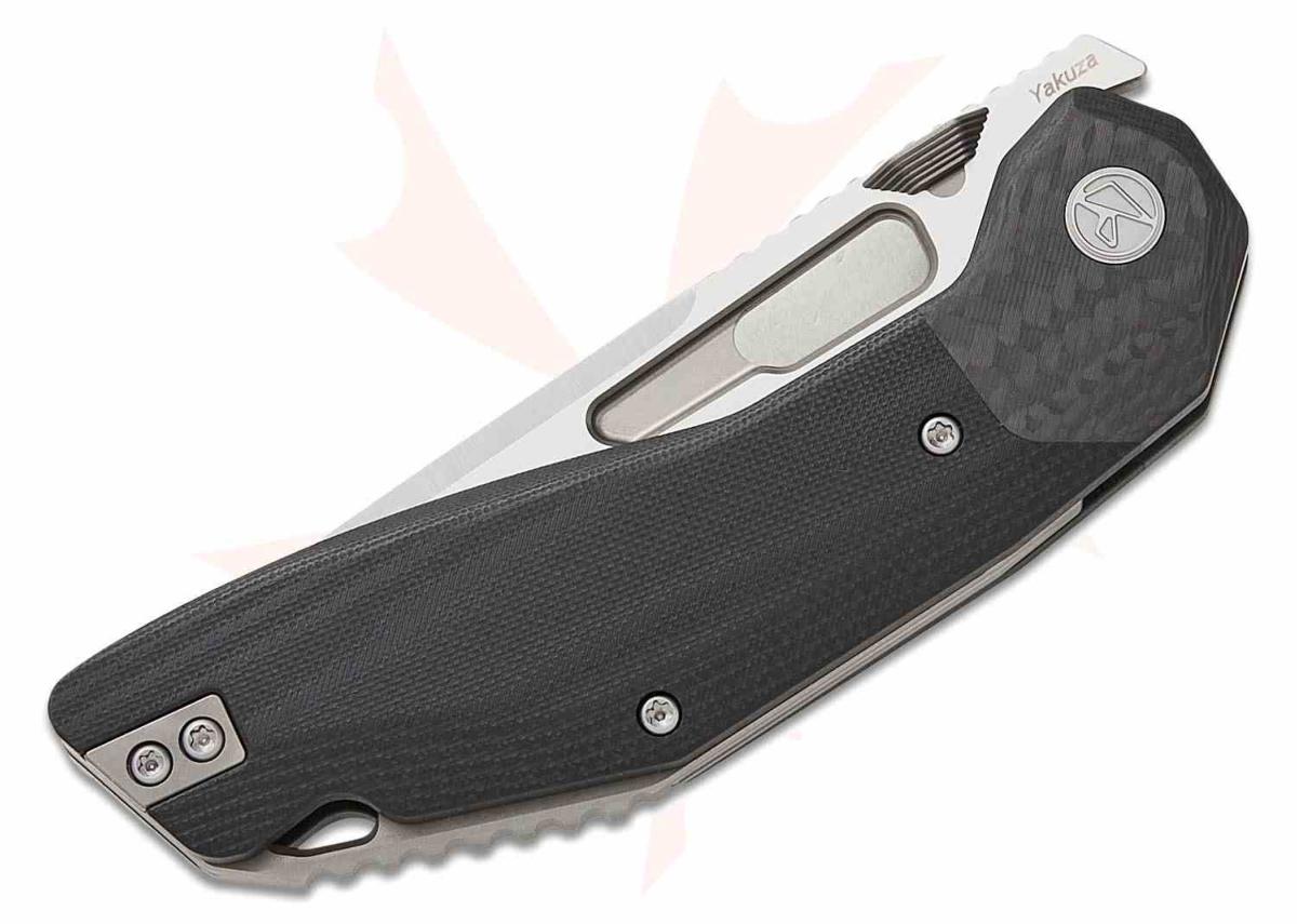 Le Ketuo Yakuza G10 Black est un couteau pliant moderne au design inspiré des lignes d’un revolver compact. Il est équipé d’une lame modified tanto de 84 mm en acier 14C28N avec finition satin, offrant un excellent tranchant et une bonne résistance à la corrosion. Le manche en G10 noir est renforcé par des bolsters en fibre de carbone, combinant légèreté, rigidité et esthétique premium. L’ouverture est fluide grâce au front flipper, au thumb disc et au thumb hole. Le linerlock assure un verrouillage fiable. Un EDC futuriste, ergonomique et parfaitement exécuté.