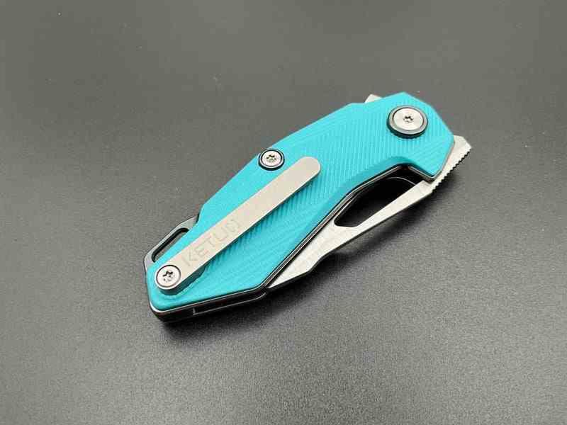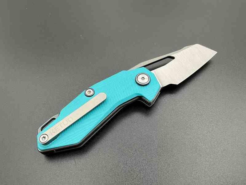 Le Ketuo Thorn V2 KETM088 est un couteau pliant compact et nerveux, pensé pour offrir une action rapide et une précision maximale dans un format ultra‑léger. Sa lame Wharncliffe de 51 mm en acier 14C28N, finition satin, assure un tranchant propre, durable et facile à entretenir. Le manche en G10 bleu apporte une excellente adhérence et une esthétique marquée, tandis que le mécanisme linerlock garantit un verrouillage sûr. Grâce à son flipper, son front flipper et son thumb slot, le Thorn V2 offre une mise en action instantanée et très fluide grâce aux roulements céramique. Un EDC compact, efficace et parfaitement conçu pour les tâches fines du quotidien.