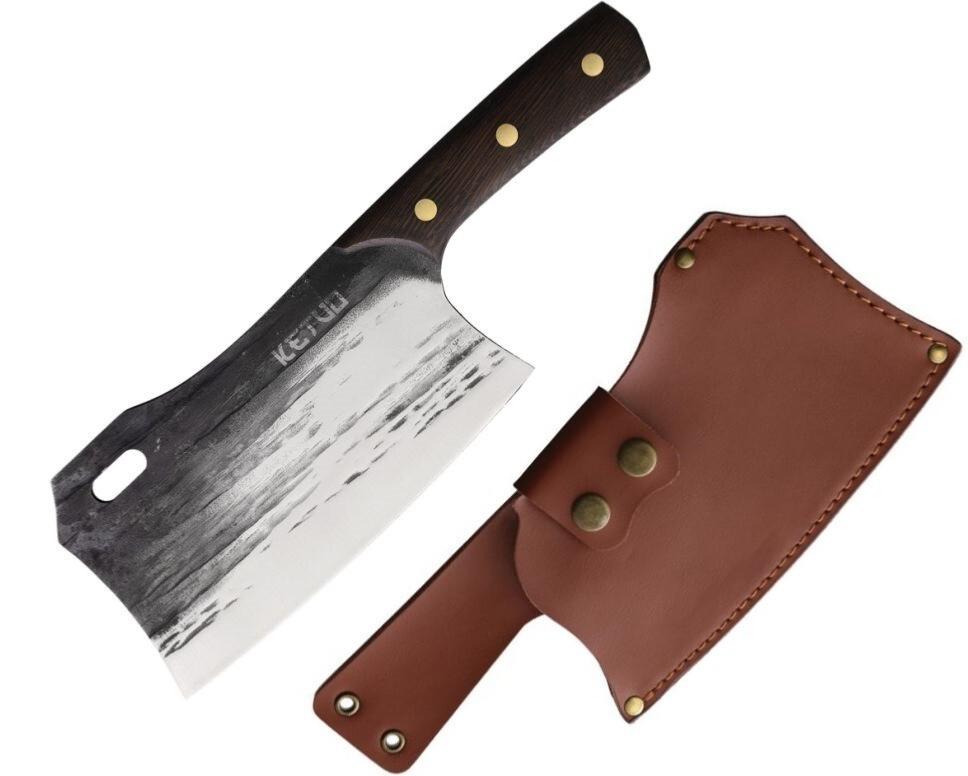 Le Ketuo 1418 est un couperet robuste et polyvalent conçu pour la cuisine comme pour les travaux de découpe exigeants. Sa lame de 18 cm en acier inoxydable offre un excellent pouvoir de coupe pour la viande, les os fins, les légumes denses et les préparations culinaires intensives. Le manche en noyer massif apporte une prise en main naturelle, chaude et confortable, tandis que la construction full tang garantit une solidité maximale. Livré avec un étui en cuir brun épais, il peut être transporté ou rangé en toute sécurité. Un outil fiable, durable et élégant, idéal pour les cuisiniers amateurs comme professionnels.