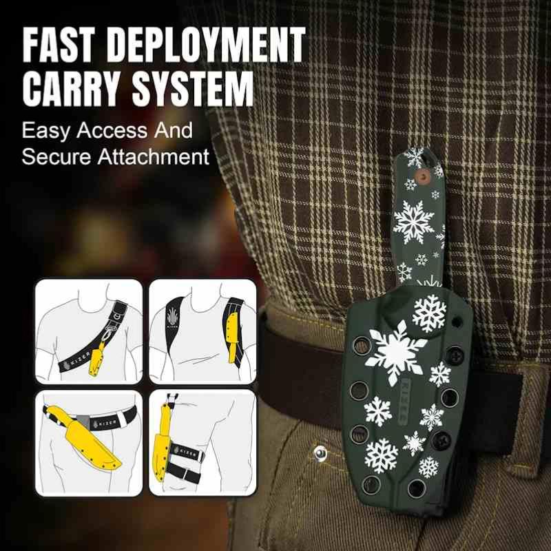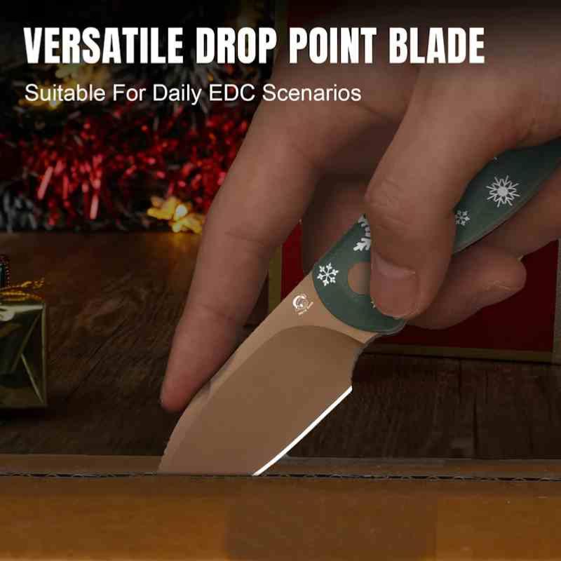 Le Kizer Christmas Drop Bear Fix 1094MC1 est une version festive et limitée du Drop Bear, pensée pour les collectionneurs et amateurs d’EDC originaux. Sa lame fixe drop point de 6,5 cm en acier D2 offre une bonne rétention de tranchant et une dureté de 60–61 HRC. La finition Sunset Metal PVD lui donne un aspect unique et élégant. Le manche en G10 vert assure légèreté, robustesse et excellente prise en main.