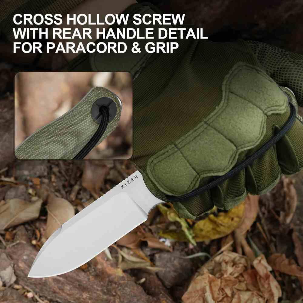 Le Kizer Drop Bear 3 1101A2 est un couteau fixe outdoor robuste, pensé pour le camping et la randonnée. Sa lame drop point en acier Sandvik 14C28N de 9,7 cm finition stonewash offre une excellente tenue de coupe et une bonne résistance à la corrosion.