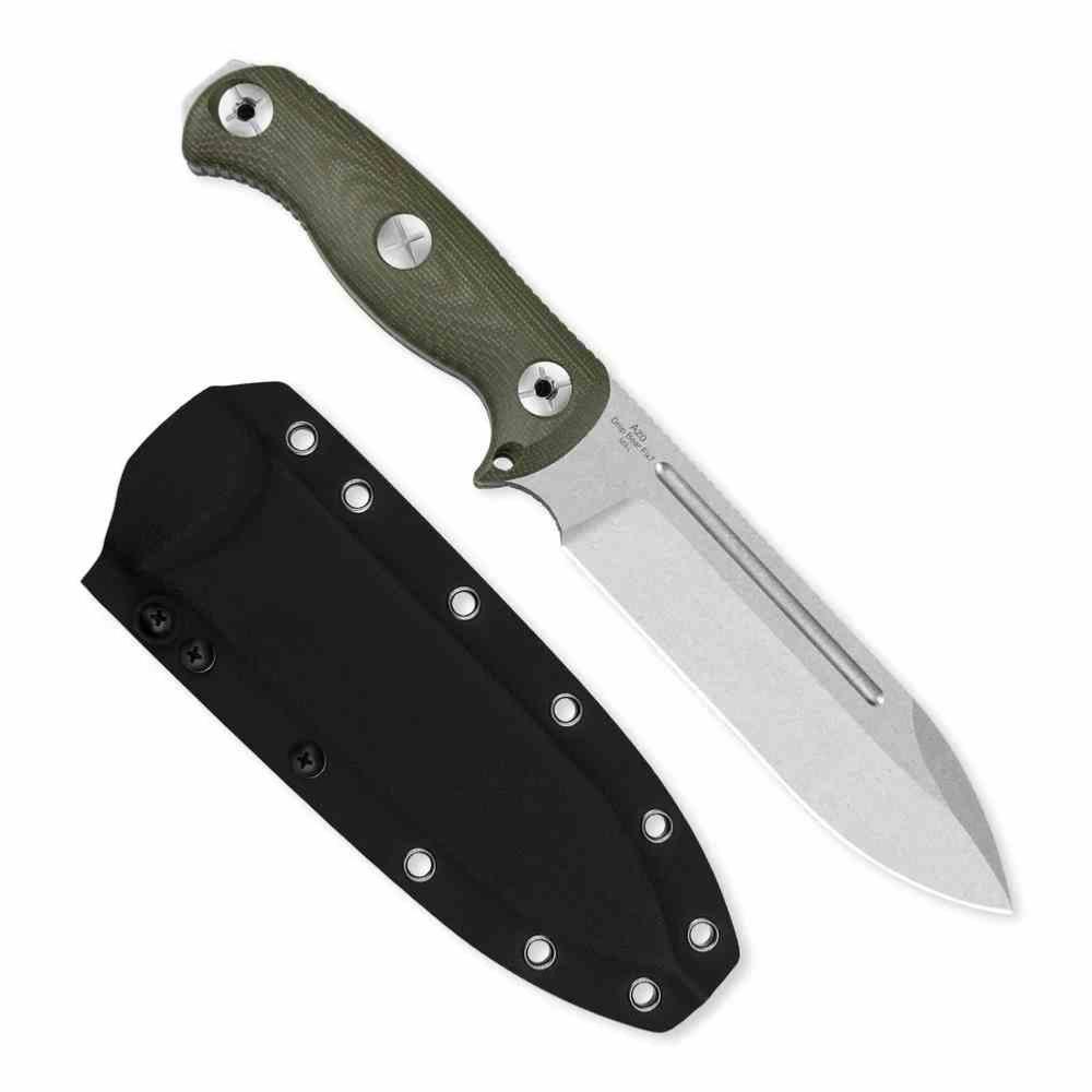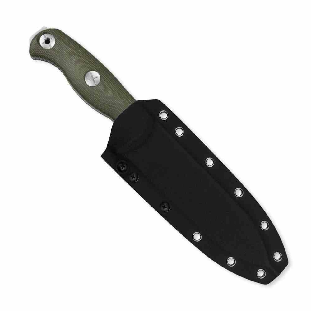 Pensé pour les environnements extrêmes, le Drop Bear Fix 7 est "built thick, built to last” : sa lame de 4.7 mm en acier AEB-L offre une rigidité exceptionnelle pour le batonnage, le levier et les coupes lourdes. Le meulage plat assure une pénétration efficace, tandis que le dos de lame déclenche les firesteels même émoussé. Le manche en micarta vert olive est sculpté pour le confort prolongé, avec jimpings multi-zones, finger choil et double trou de lanière. L’étui Kydex rotatif propose 8 positions verrouillables tous les 45°, avec rétention ajustable pour un port personnalisé.