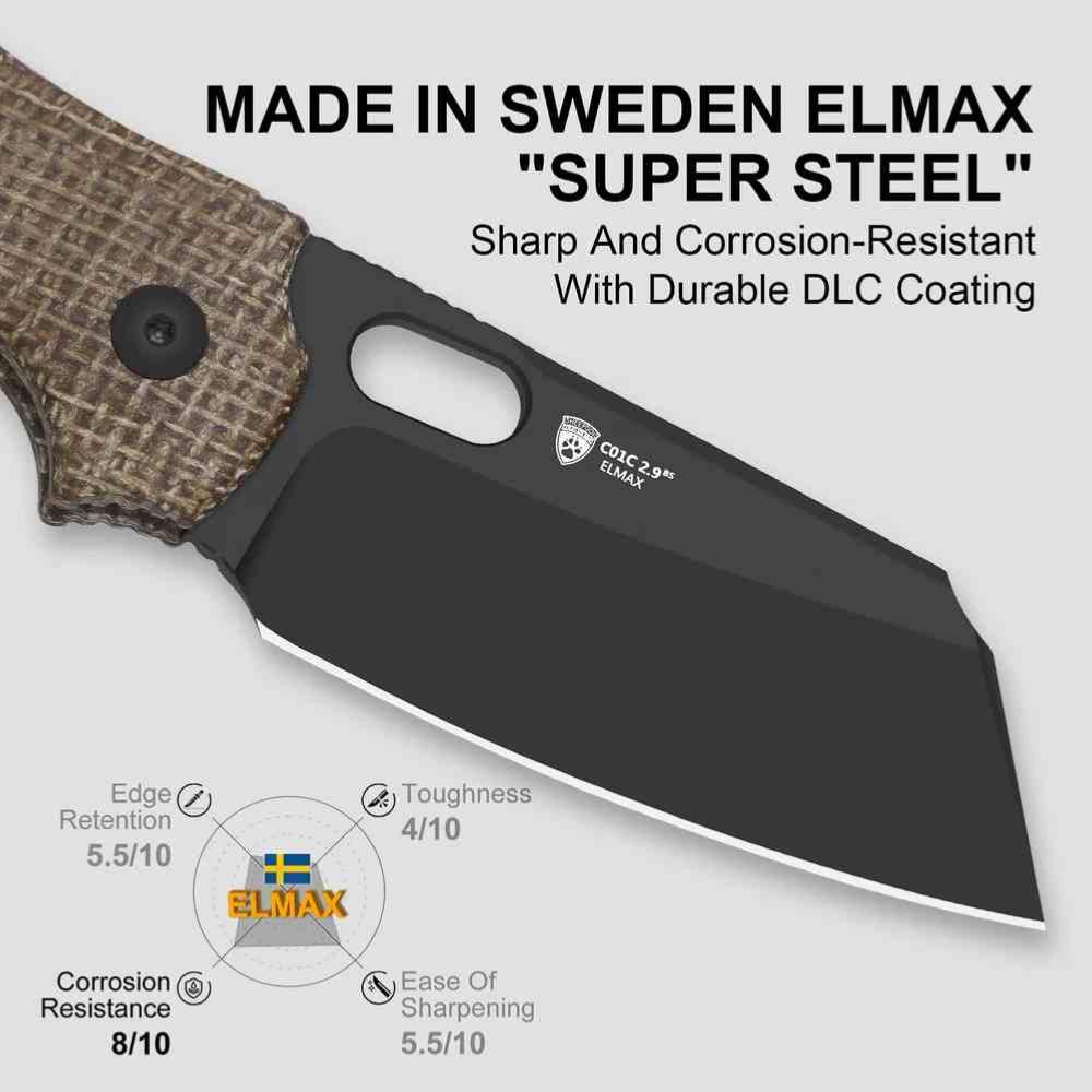 Le Kizer C01C 2.9 BS Ki3488.29BSA2 est une version compacte et robuste du celebre C01C concu par Sheepdog Knives. Sa lame sheepsfoot en acier Elmax, finition Black DLC, offre une excellente resistance a l’usure, une tenue de coupe remarquable et une durabilite exceptionnelle. Le manche en Norplex UltreX Micarta Brown assure une prise en main solide, confortable et adaptee aux usages intensifs. L’ouverture se fait via un thumb hole, tandis que le button lock garantit une manipulation fluide et securisee. Un EDC puissant, fiable et concu pour durer.