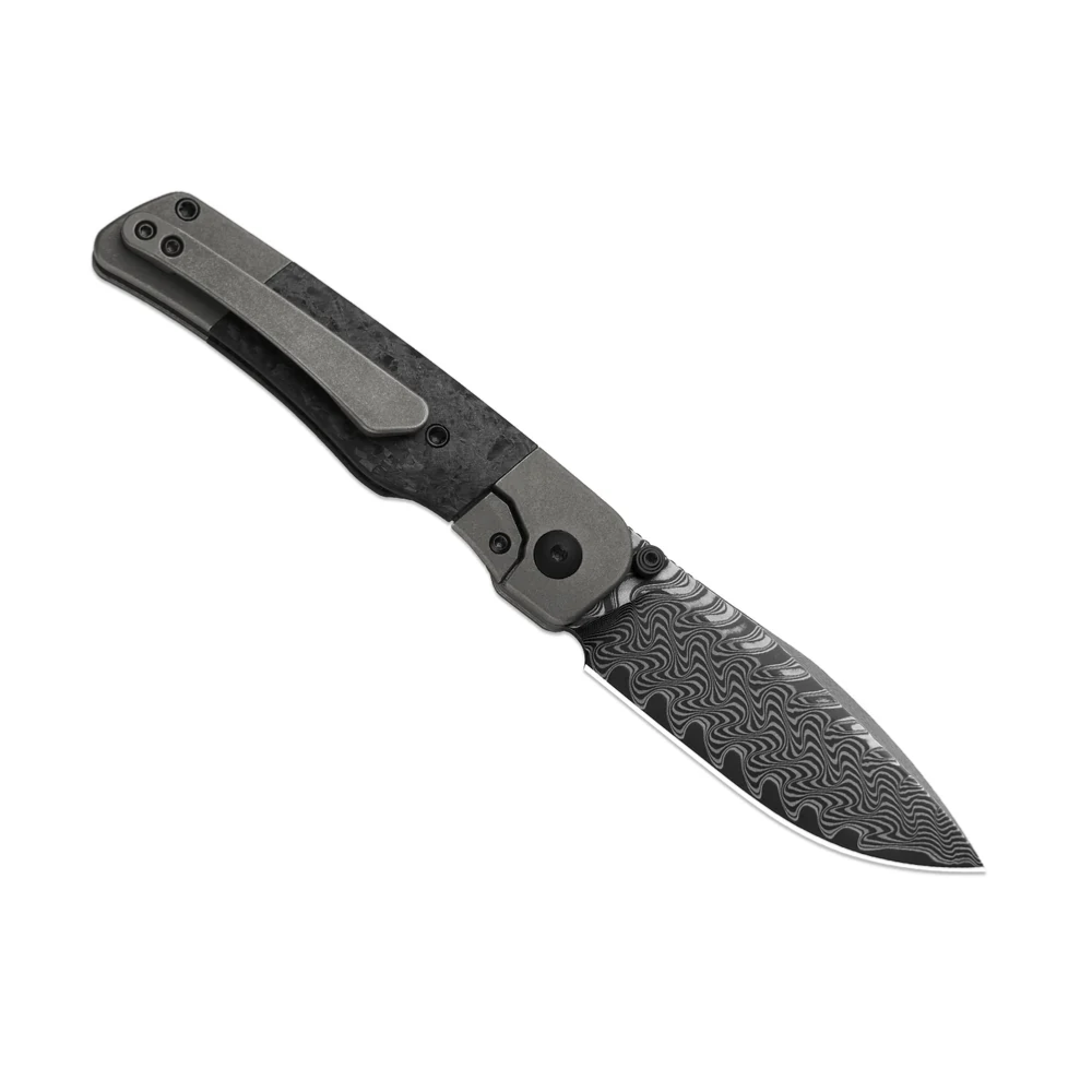 La lame au profil Drop Point est forgée en Lame Acier Damas, offrant des motifs pliés complexes et uniques sur chaque pièce. Elle bénéficie d'une finition Acid-Washed qui sublime le contraste du métal tout en offrant une excellente tenue du tranchant (60-62 HRC). Avec une longueur de 7,74 cm (3.05"), elle est parfaitement calibrée pour les tâches quotidiennes, offrant un contrôle total et une performance de coupe supérieure. Le déploiement est fluide et rapide via le Thumb Stud (ergot de pouce).