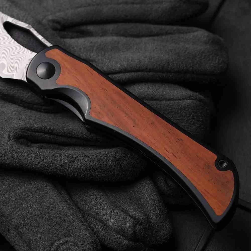 Le manche est une œuvre d'art en soi, associant une structure en Black Titanium (Titane noir) robuste et légère à de magnifiques inserts en Panama Rosewood (Bois de Rose du Panama). Cette alliance offre une prise en main chaleureuse et une esthétique intemporelle. Le mécanisme de verrouillage Liner Lock assure une stabilité parfaite de la lame, tandis qu'un clip de poche en titane usiné 3D permet un transport sécurisé et élégant.