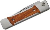 Sa lame Drop Point en acier Nitro-V garantit une excellente performance de coupe, avec une finition satinée et un affûtage plat pour une précision optimale. Son manche en aluminium argenté avec insert en bois Mkuruti apporte une touche esthétique unique et une ergonomie parfaite.