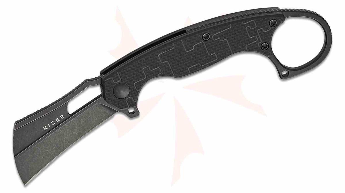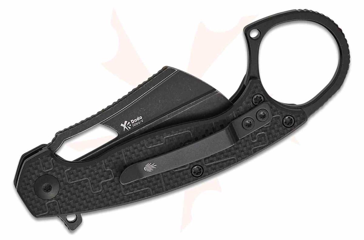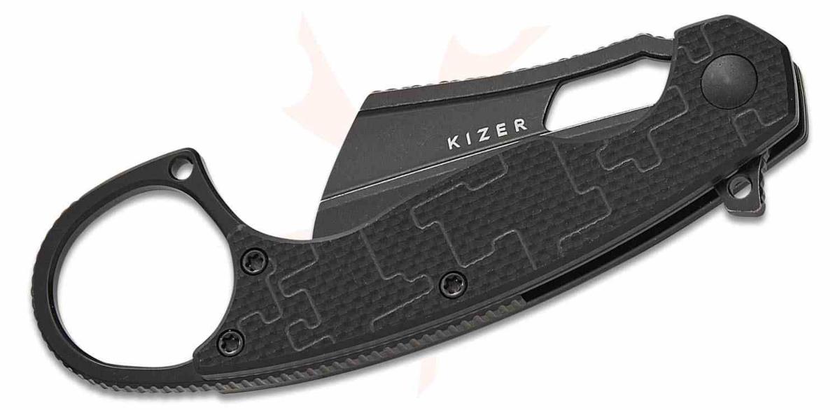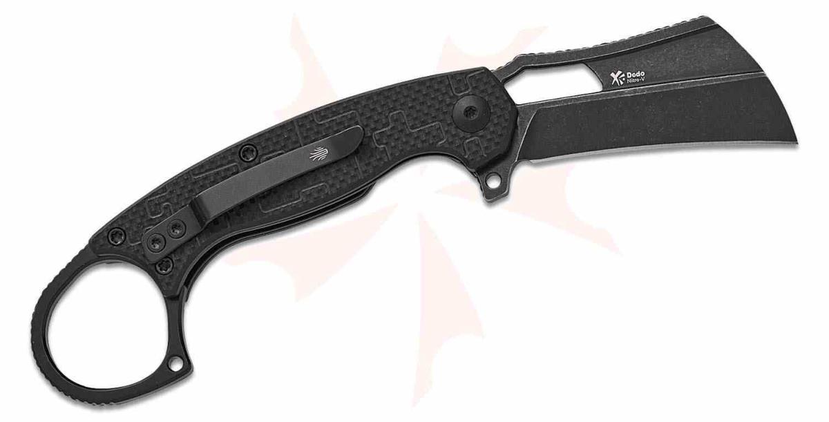 Le Kizer Dodo V2702A3 est un couteau pliant au format ultra compact, conçu pour les amateurs d’EDC atypique et les environnements urbains. Il combine une lame karambit modifiée en acier Nitro-V finition black stonewash, avec un manche G10 noir texturé. L’ouverture se fait via un flipper ou un thumb hole, et le verrouillage est assuré par un liner lock précis et fluide. Son design incurvé et son format réduit en font un outil discret mais redoutablement efficace.