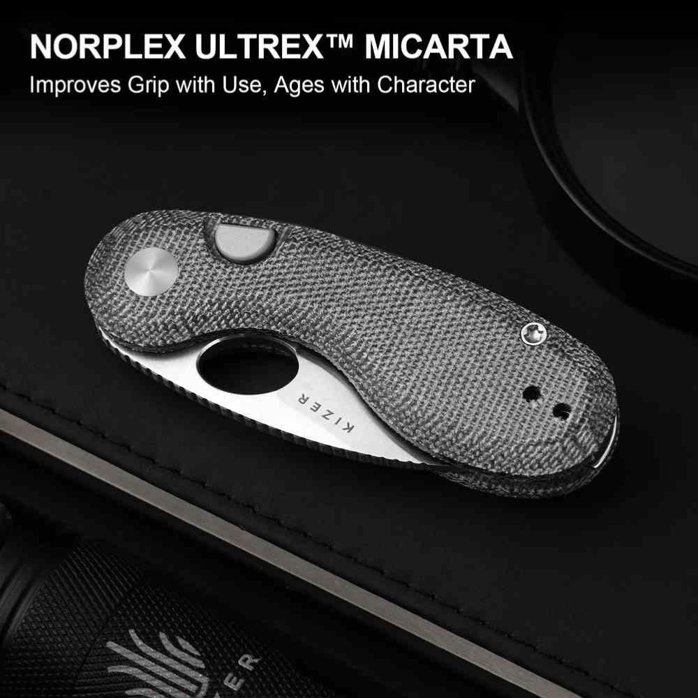Le Kizer Microbe V2742A2 est un couteau EDC ultra compact concu par Maksim Epifantsev. Sa lame drop point en acier 14C28N offre une excellente resistance a la corrosion et une tenue de coupe fiable. La finition satin met en valeur la geometrie de la lame. Le manche en Norplex UltreX Micarta Black assure une prise en main confortable et antiderapante. L’ouverture se fait via un thumb hole, tandis que le button liner lock garantit une manipulation fluide et securisee. Un EDC discret, leger et ideal pour un usage quotidien.