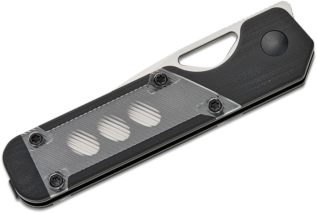 Caractéristiques : Lame en acier inoxydable Nitro-V 59-61HRC, Mécanisme de verrouillage liner lock, Manche en G10 noir avec incrustations en acrylique transparent, Clip de poche deep carry (tip-up, port à droite), Conçu par Johnathan Styles.