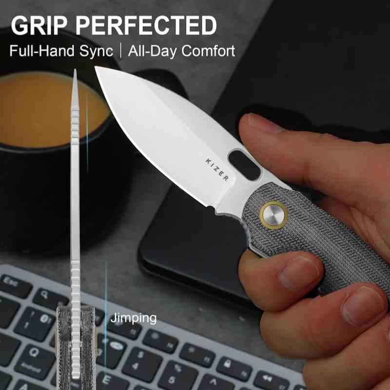 Le Kizer Seagull V3770A1 est un couteau pliant EDC compact, conçu pour les tâches quotidiennes avec une construction robuste et un design sobre. Sa lame en acier inox 14C28N adopte une émouture creuse (hollow grind) pour une coupe précise et durable, avec une finition satinée qui met en valeur les lignes du profil drop point. Le manche en micarta brun offre une prise en main naturelle et texturée, idéale en conditions humides ou prolongées. L’ouverture est ambidextre grâce au flipper et au thumb hole, et le verrouillage liner lock assure une sécurité fluide. Le clip de poche tip-up permet un port discret.