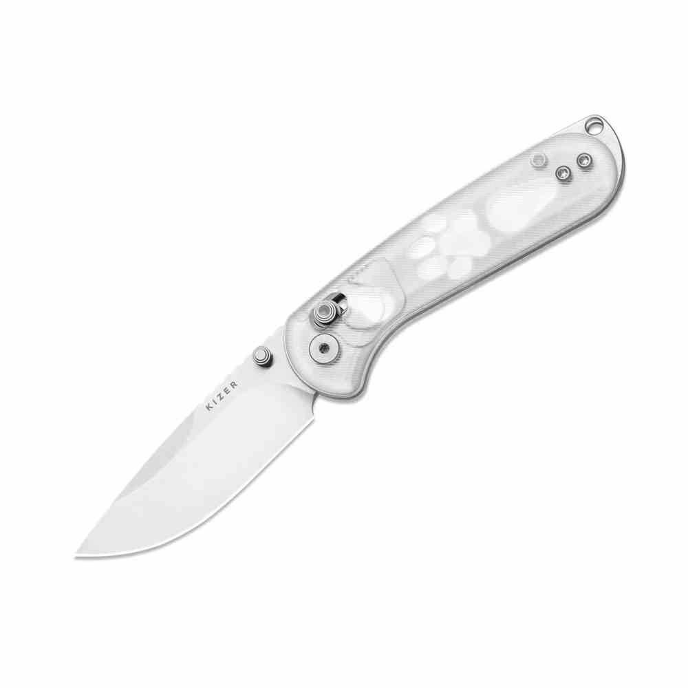 Le Kizer Buddy II (référence V3790A2), imaginé par le designer Maksim Epifantsev, est un couteau d'EDC moderne qui privilégie la fluidité et l'ergonomie. Ce modèle se distingue par son esthétique minimaliste "Full White" et l'intégration du Kizer Clutch Lock™, un système de verrouillage à barre transversale ajustable offrant une manipulation ambidextre d'une douceur exceptionnelle. Conçu pour être votre compagnon quotidien idéal, le Buddy II combine légèreté et robustesse pour toutes vos tâches de coupe.