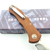 Descriptif : Le couteau Komoran Broxn est doté d'une lame tanto en acier inox avec une finition satin. Le manche est en acier & brown micarta avec un trou à l'extrémité pour le cordon de sécurité. Ouverture de la lame à 2 mains. La sécurité lockback assure un blocage parfait de la lame et le clip un accès rapide au couteau.