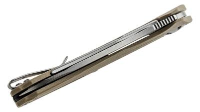 Manche : En G10 tan, procurant une prise en main confortable tout en étant léger et résistant.