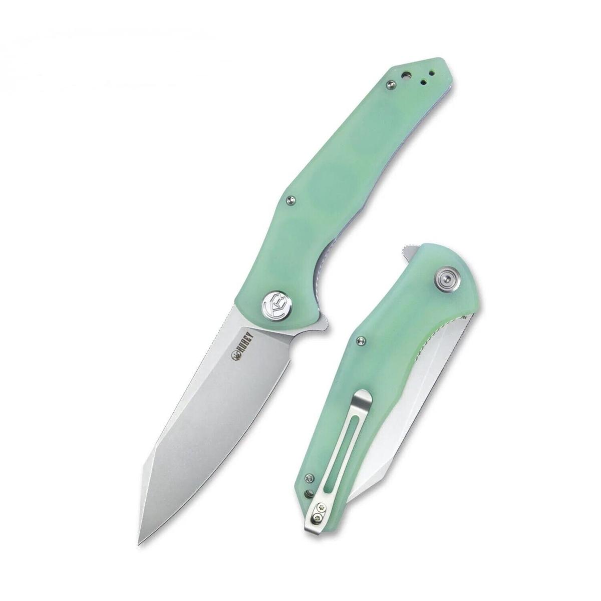Descriptif : Le couteau Cubey Flash Jade est doté d'une lame tanto reverse en acier AUS-10 59-61HRC avec une finition microbillée. L'ouverture d'une main est très fluide grâce au pivot sur roulement à billes en céramique. Le manche est en acier et G10 Jade. La sécurité linerlock assure un blocage parfait de la lame et le clip un transport discret dans la poche et dans le sac.