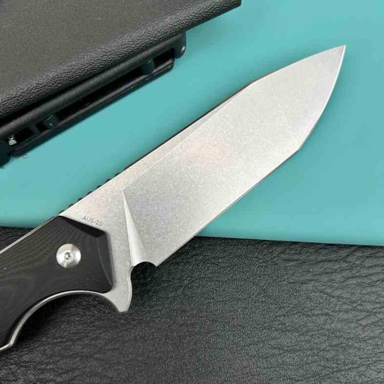 La lame au profil Tanto est forgée en Lame Acier AUS-10, un acier japonais réputé pour sa grande dureté et sa facilité à retrouver un tranchant rasoir. La finition Stonewash (lavée à la pierre) donne à l'acier un aspect mat et texturé qui présente l'énorme avantage de masquer les micro-rayures et les traces de doigts, idéal pour un couteau de travail. La pointe Tanto renforcée assure une puissance de pénétration exceptionnelle sans risque de casse.