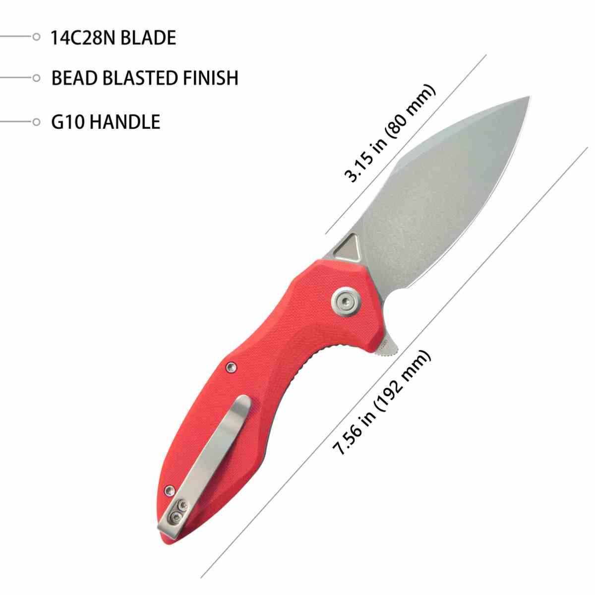 L’ouverture se fait par flipper monté sur roulements céramique en cage, garantissant une action fluide et rapide. Le verrouillage liner lock sécurise l’utilisation. Le manche en G10 rouge apporte une esthétique vive et originale, tout en offrant robustesse et ergonomie. Le clip de poche réversible tip‑up permet un port ambidextre pratique.