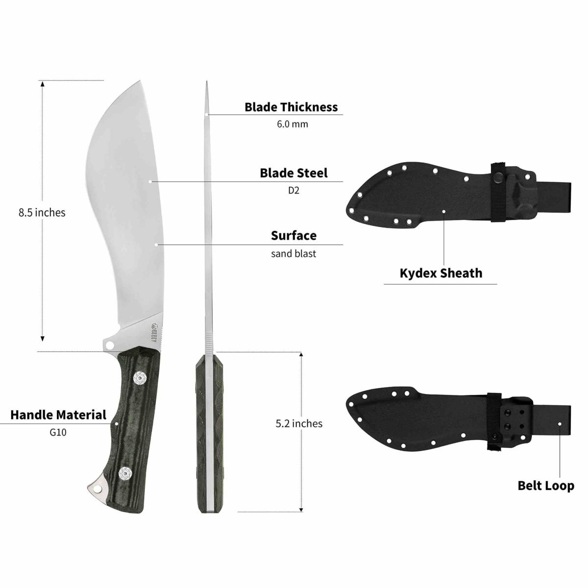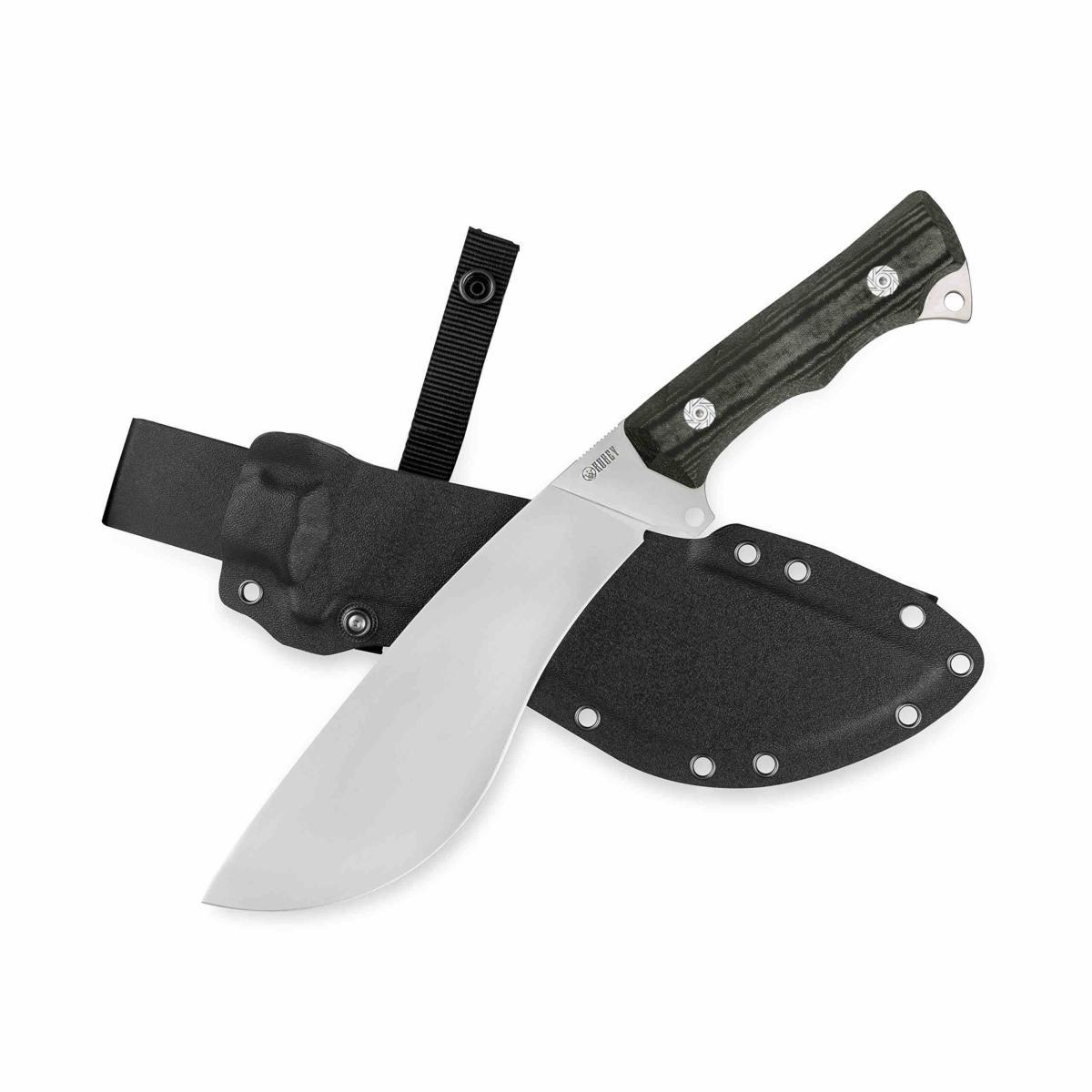 Le Kubey Destroyer KU241E est un couteau à lame fixe au profil Kukri tactique, conçu pour les tâches intensives en outdoor, bushcraft ou défense. Il combine une lame Kukri incurvée en acier D2 haute dureté avec une finition stonewash, montée sur un manche G-10 noir texturé. L’ensemble est livré avec un étui Kydex compatible MOLLE.